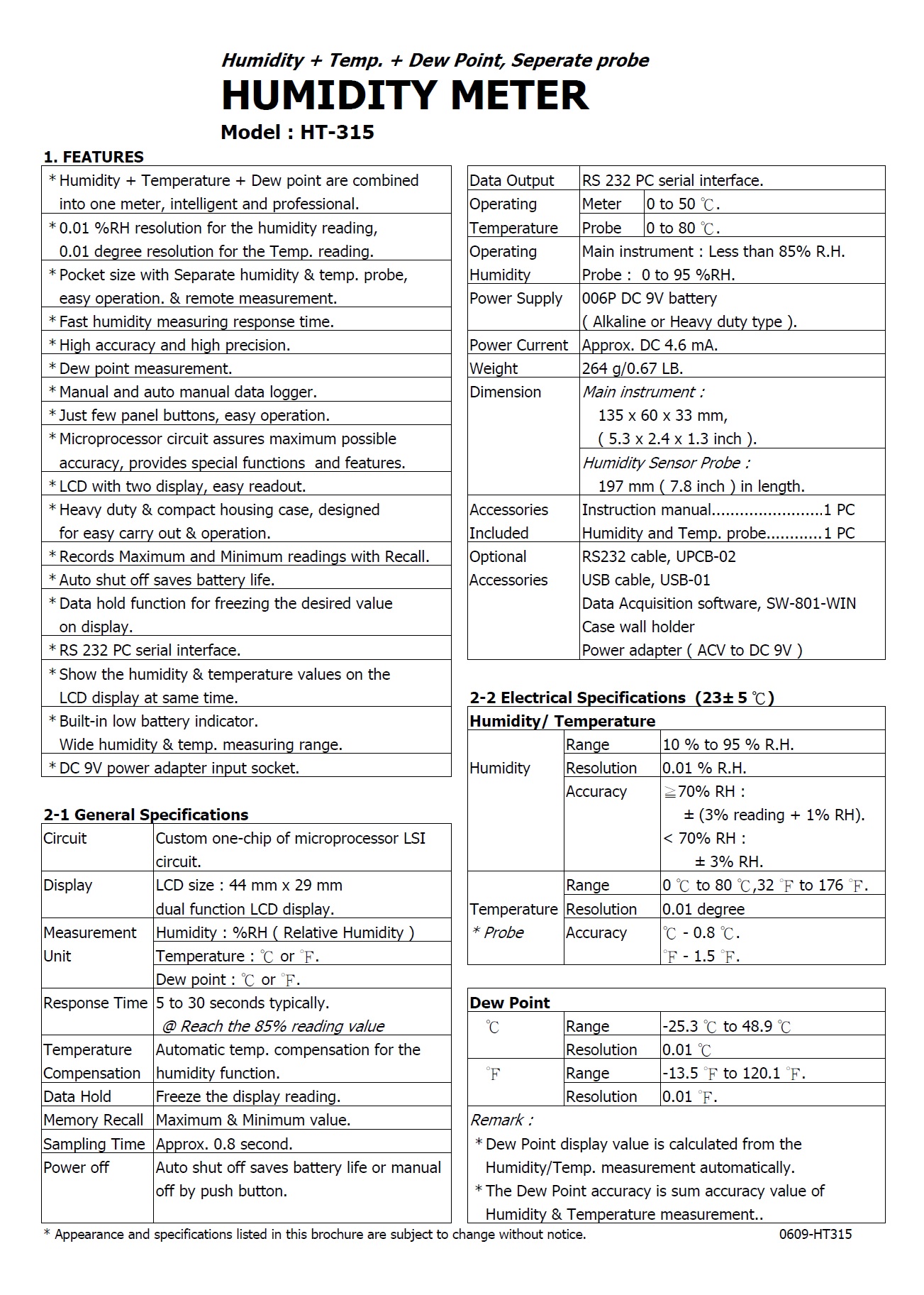 * Resolution : 0.01 %RH, 0.01 degree.