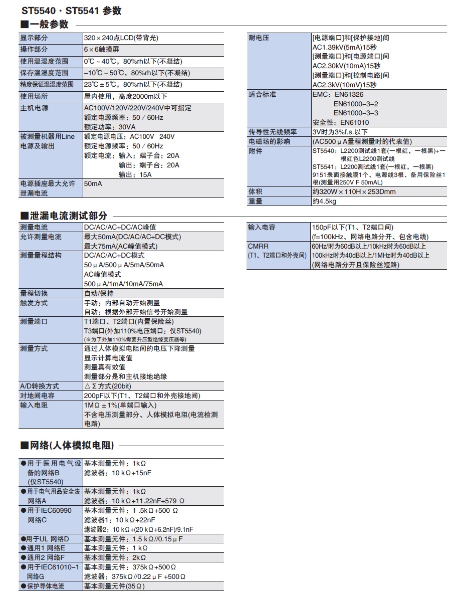 测量医用电气设备的泄漏电流,请使用ST5540。