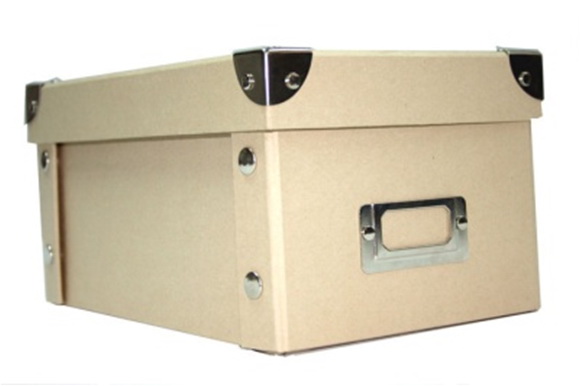 Foldable CD box, kraft paper, with 4 metal corners and name card holder
