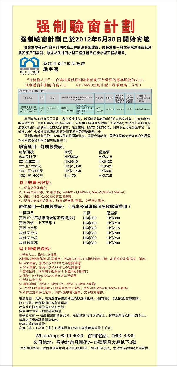 Product Name : 強制驗窗計劃