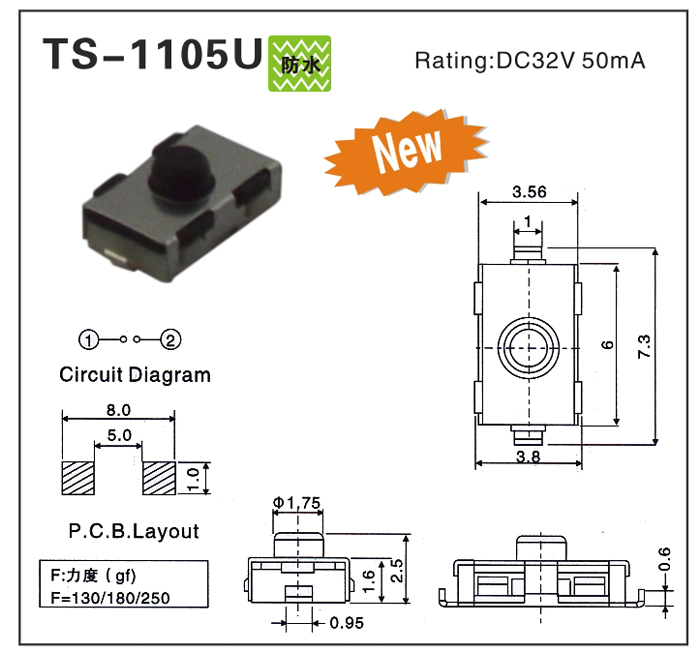 TACT SWITCH WATER PROOF (輕觸防水開關)DC 32V, 50mA