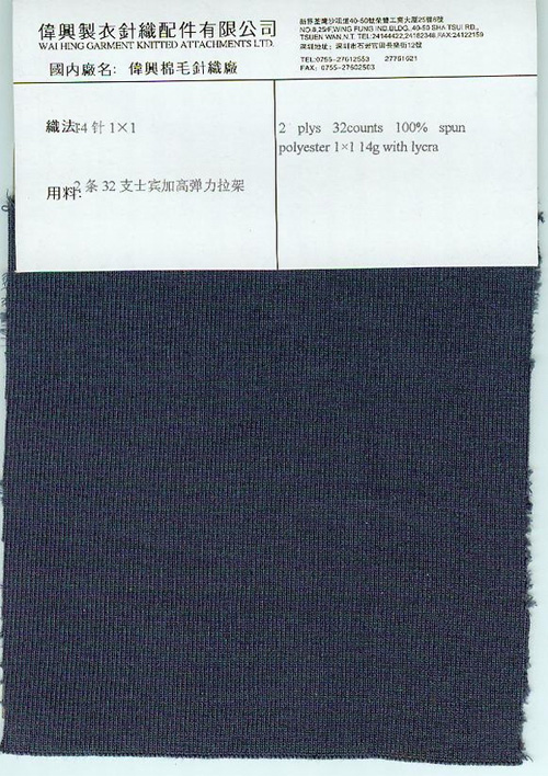 2 plys  32 counts  100% spun potyester  1 x 1  14g  with lycra